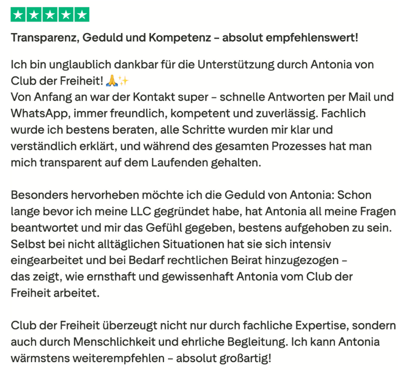 Im Club der Freiheit haben wir uns auf die Gründung und das Management von US LLCs für ortsunabhängige Unternehmer:innen spezialisiert.